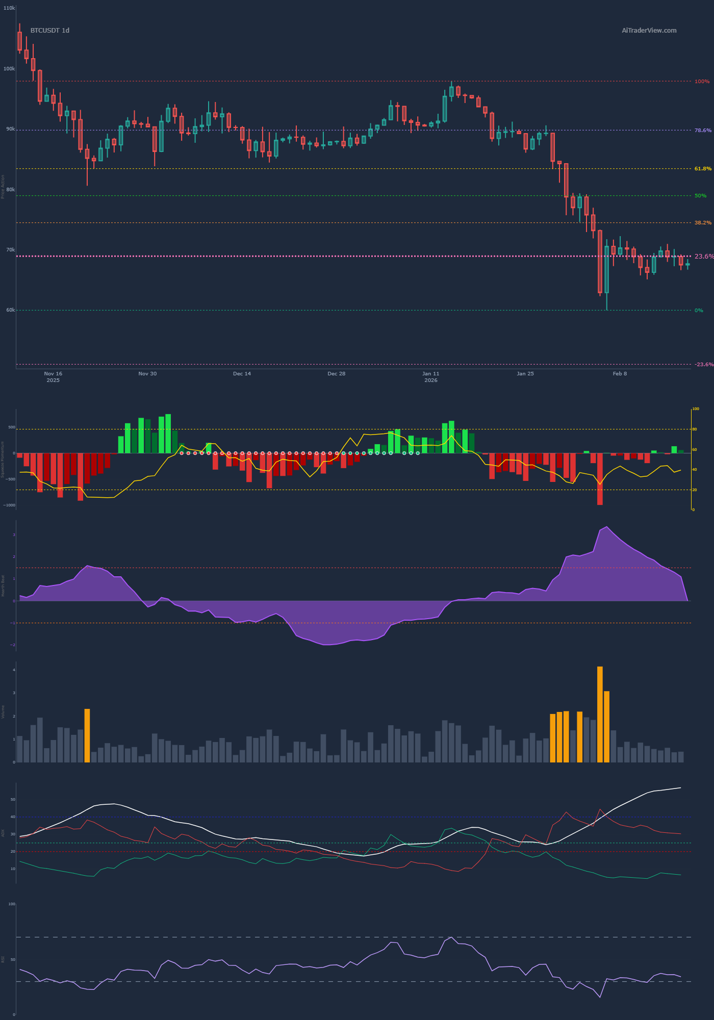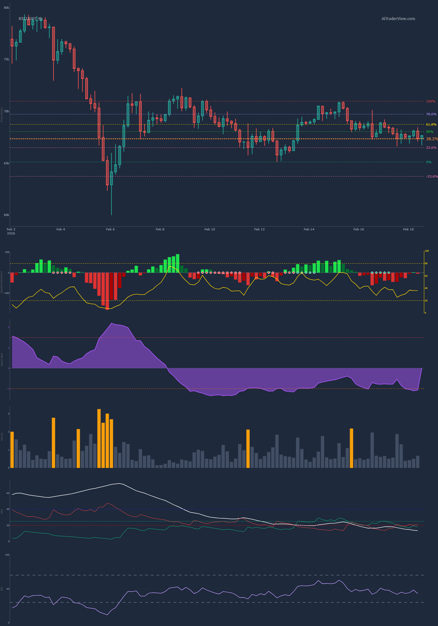 Fibonacci Level[ ][1][ ]Hard rejection at 0.618 Golden Pocket (~72k).
