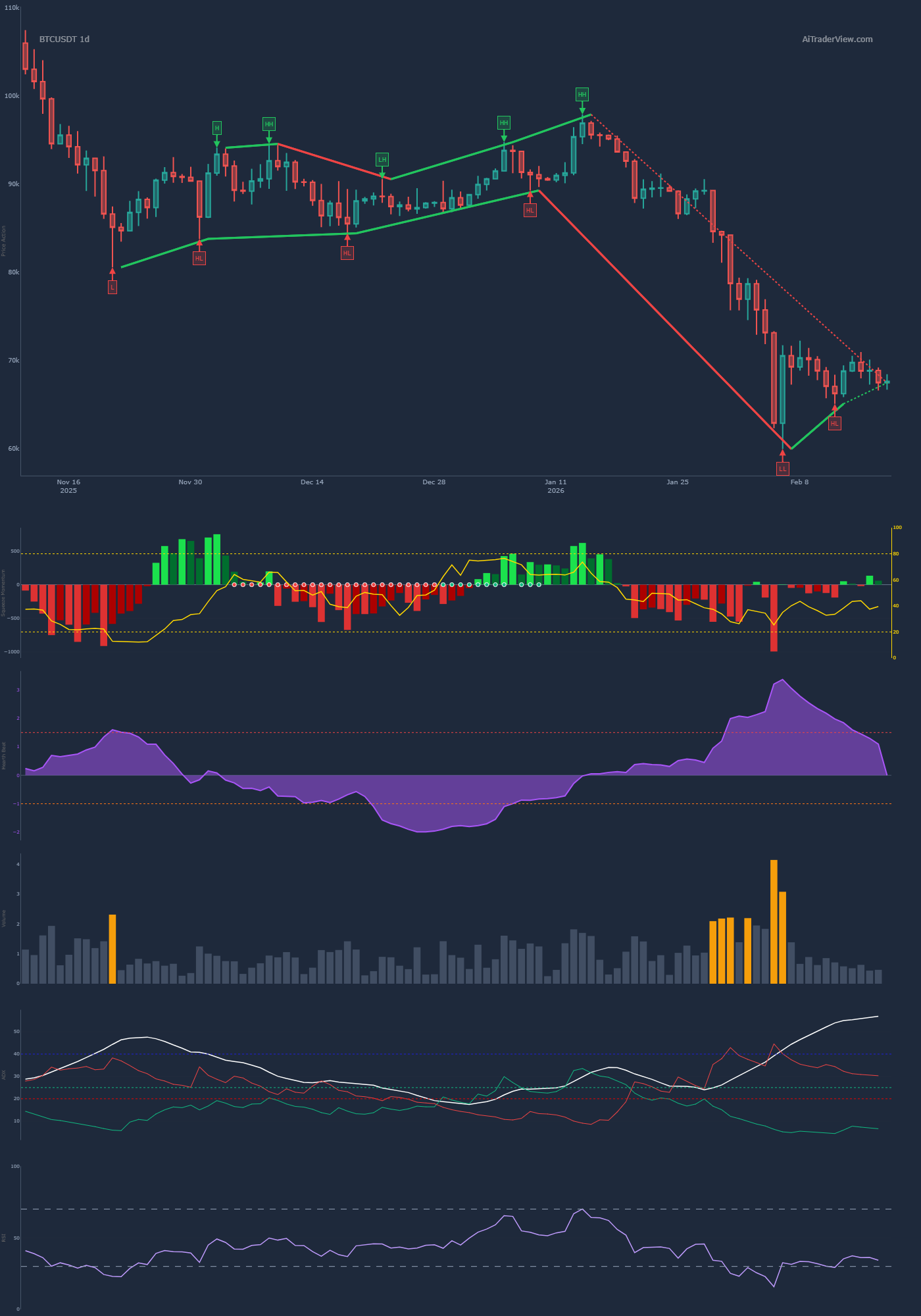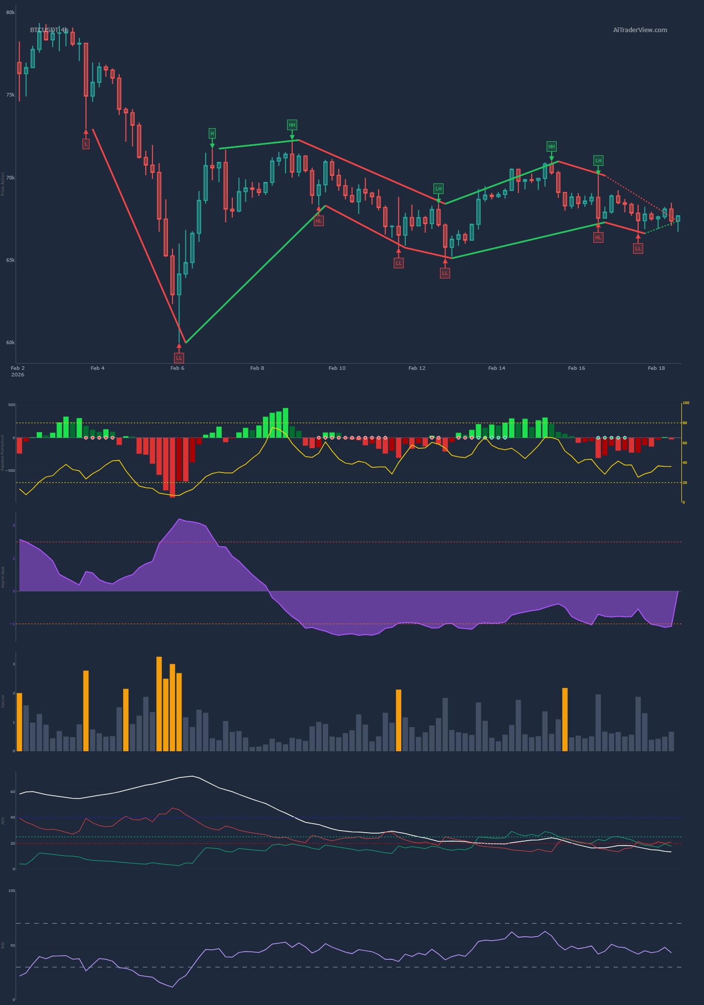 • Daily: The structure is undeniably Bearish. We see a clear sequence of Lower Highs (LH) and Lower Lows (LL).