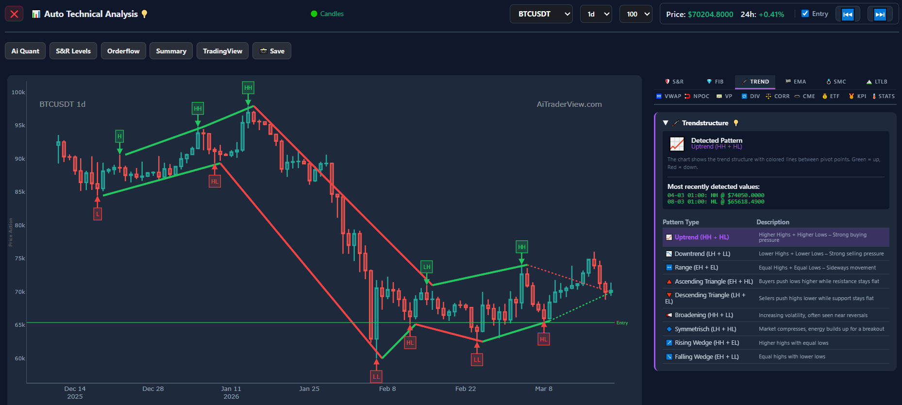 | 7. Trend | 1 | 0 | 0 | The 1D indicator explicitly detects an “Uptrend (HH + HL) – Strong buying pressure”. |