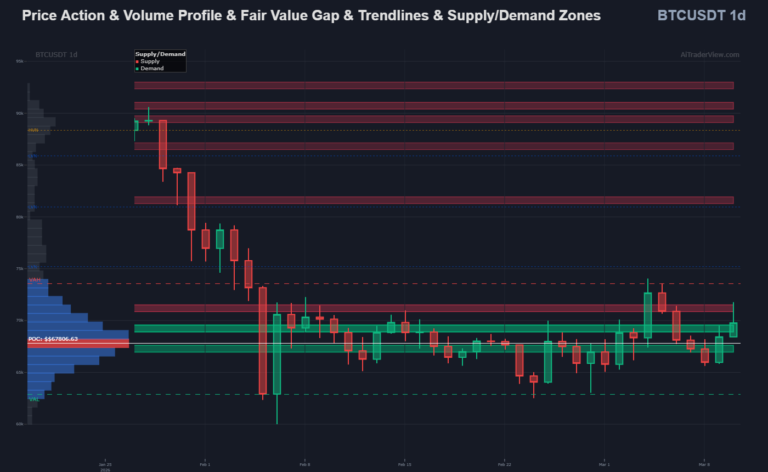 Bitcoin Orderflow Analysis: The $67K Battlefield, 1d Trendline broken & The Whale’s Gambit