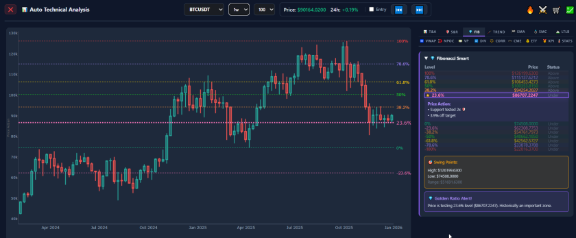 - Structural Location: Identifies proximity to Fibonacci Golden Pockets or Resistance levels.
