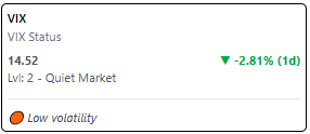 The dashboard displays the VIX value with specific color-coding to assist in assessing the macro risk level:
